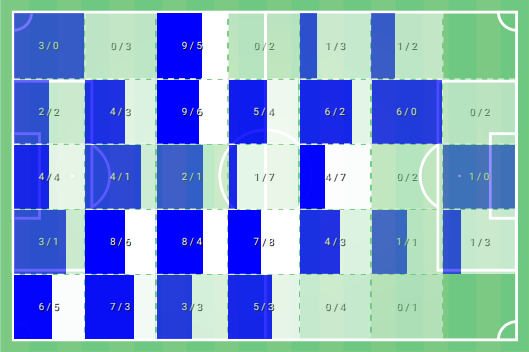 Как видно «Нитра» в финальной трети на полуфлангах показала результат в 6 удачных против 2 и 4 против 3. Тогда как на своей половине в защите в этих же зонах так же оказалась лучше «Злате». Кроме того 6 против 0 на левом полуфланге выше к штрафной. «Нитра» действительно была неплоха вверху и на подборах. Другой вопрос: насколько это устойчиво или же дело в случае и сопернике. Сложно сказать, но хорошая игра в единоборствах точно не то, что моэет оправдывать такой подход в атаке.
