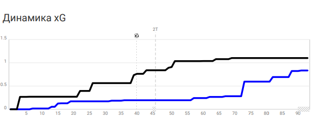 Как видно, большинство остроты «Нитра»(синяя полоса) создала только после 70-ой минуты. Ни о каком общематчевом улучшении речь не идет даже в этом сухом показателе.